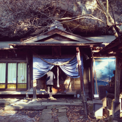 巨大な洞窟の軒下を借りて本殿が建つ滝沢不動尊。1406年上野国左貫の庄司藤原道広が寄進したと言われる不動尊は、有名な上杉謙信が戦の折に同行させたといういわれがある。今でも地元の自治会により管理されている。